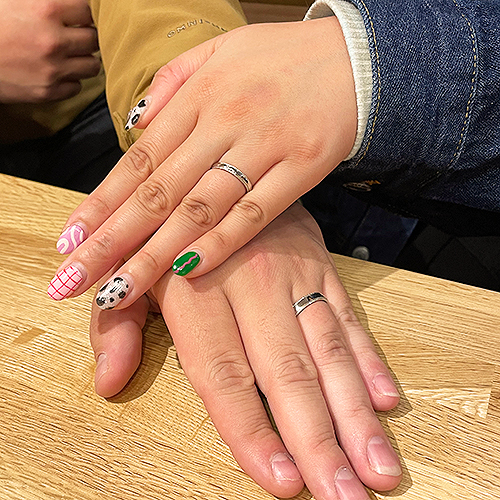 『とてもお店の雰囲気が良く、アットホームで居心地が良かったです!結婚指輪も着け心地が良く、デザインもとても気に入りました。藤原さんありがとうございました😊』