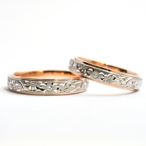 当店でも長年に渡り販売してきました「桜子」を代表するツートンカラー土台の結婚指輪。