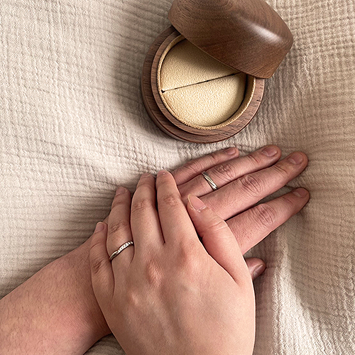 結婚指輪をお送りしたおふたりから、素敵なお写真が届きましたのでご紹介いたします。