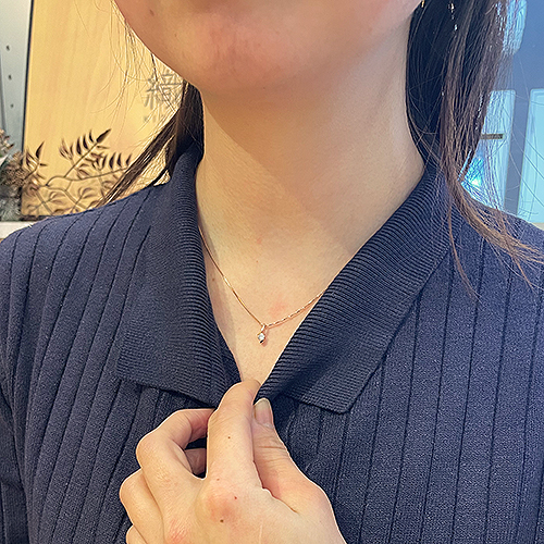ひとつのご縁がきっかけで、ピンクゴールドが可愛いダイヤモンドのネックレスをお創りさせて頂きました。