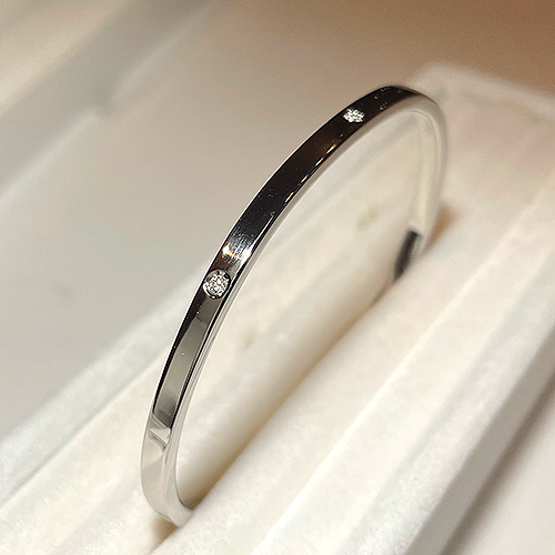 このプラチナでバングルを作り、ルビーのTOPから外したダイヤモンドを留めました。