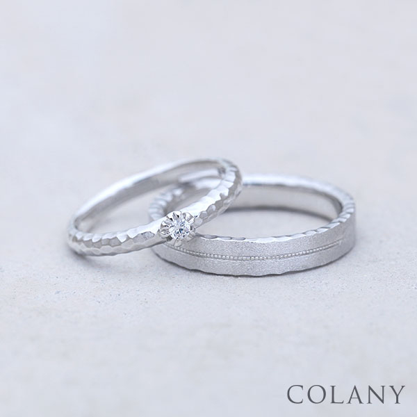 メンズは、平打ちのリングに手作業で施した細かなミル打ちによって、満開の桜並木を表現。レディースはダイヤと爪で表現した桜の蕾を可愛くあしらっています。