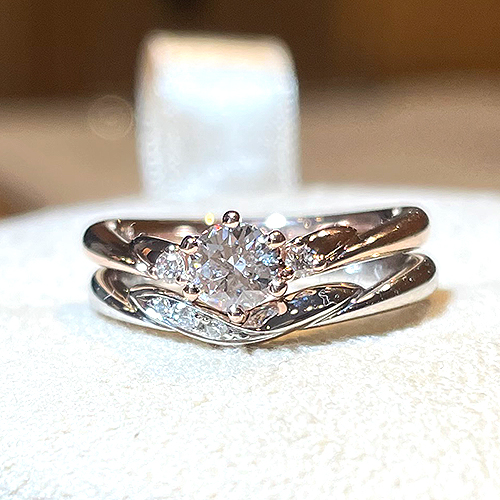 • ・オーナーから:ダイヤモンドプロポーズのご相談でご来店下さり大成功!その後、デザインを一緒にお選び下さいました。婚約指輪は可愛いピンクゴールド、結婚指輪はプラチナのセットリングです。旭川にお越しの際は気軽にお立ち寄りくださいね。